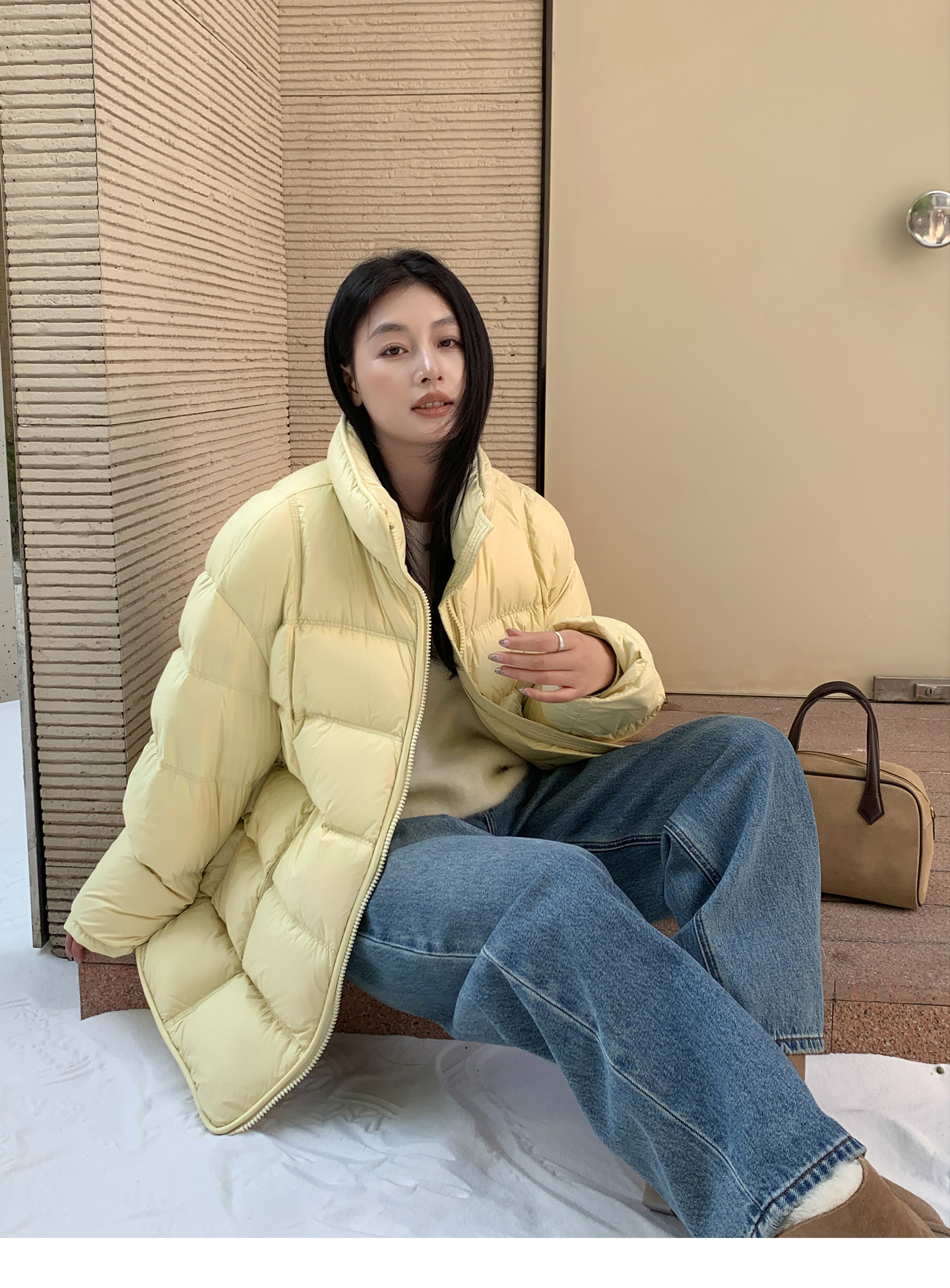 868g (包含包装盒重量) 充绒量:M(176g)、L(180g)、XL(184g) 100%锦纶 里料:100%锦纶 填充物:白鸭绒(绒子含量90%) 咖色 灰色 米白色 蓝色 黑色 黄色 有 拉链开合,真口袋 厚度指数: 厚 偏薄 薄 适中 柔软指数: 适中 软 柔软 硬 弹力指数: 无弹 微弹 弹力 超弹 版型指数: 宽松 紧身 合体 修身 尺码 连肩袖长 胸围 衣长 M 68 128 78 L 69 132 79 XL 70 136 80