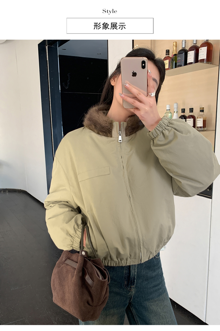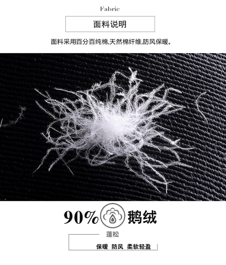 填充物:白鹅绒(绒子含量90%)毛领:水貂毛
