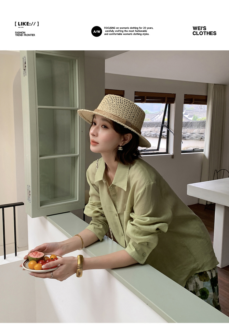 360g (包含包装盒重量) 100%苎麻 卡绿色,藏青,白色,浅绿 无 纽扣开合 厚度指数: 厚 偏薄 薄 适中 柔软指数: 适中 软 柔软 硬 弹力指数: 无弹 微弹 弹力 超弹 版型指数: 宽松 紧身 合体 修身 尺码 肩宽 胸围 衣长 袖长 M 49 126 69 57 L 50 128 70 58 XL 51 130 71 59